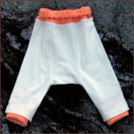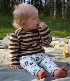 The ManyMonths™ trousers grow with your child. Start by folding the waist down and the cuffs up, in addition to adjusting the waist with button-hole elastic. The bum part has a generous cut to accommodate cloth diapers and to be comfortable while babywearing.