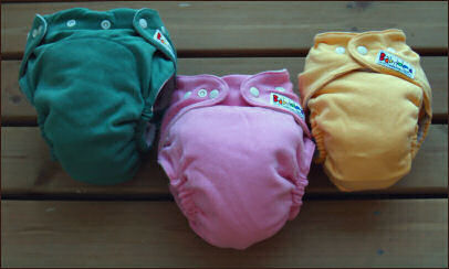 The AirHours and inserts need to be washed after each use. Store in a dry diaper pail, diaper and insert separately. Wash with similar colours. Start with pre-wash/machine rinse program on cold without a detergent, wash in 60°C with a detergent and line dry. Don't use any bleaching agents, brighteners, fabric softeners, fragrances or pure soap. The child and environmental friendly dyes fade with use.